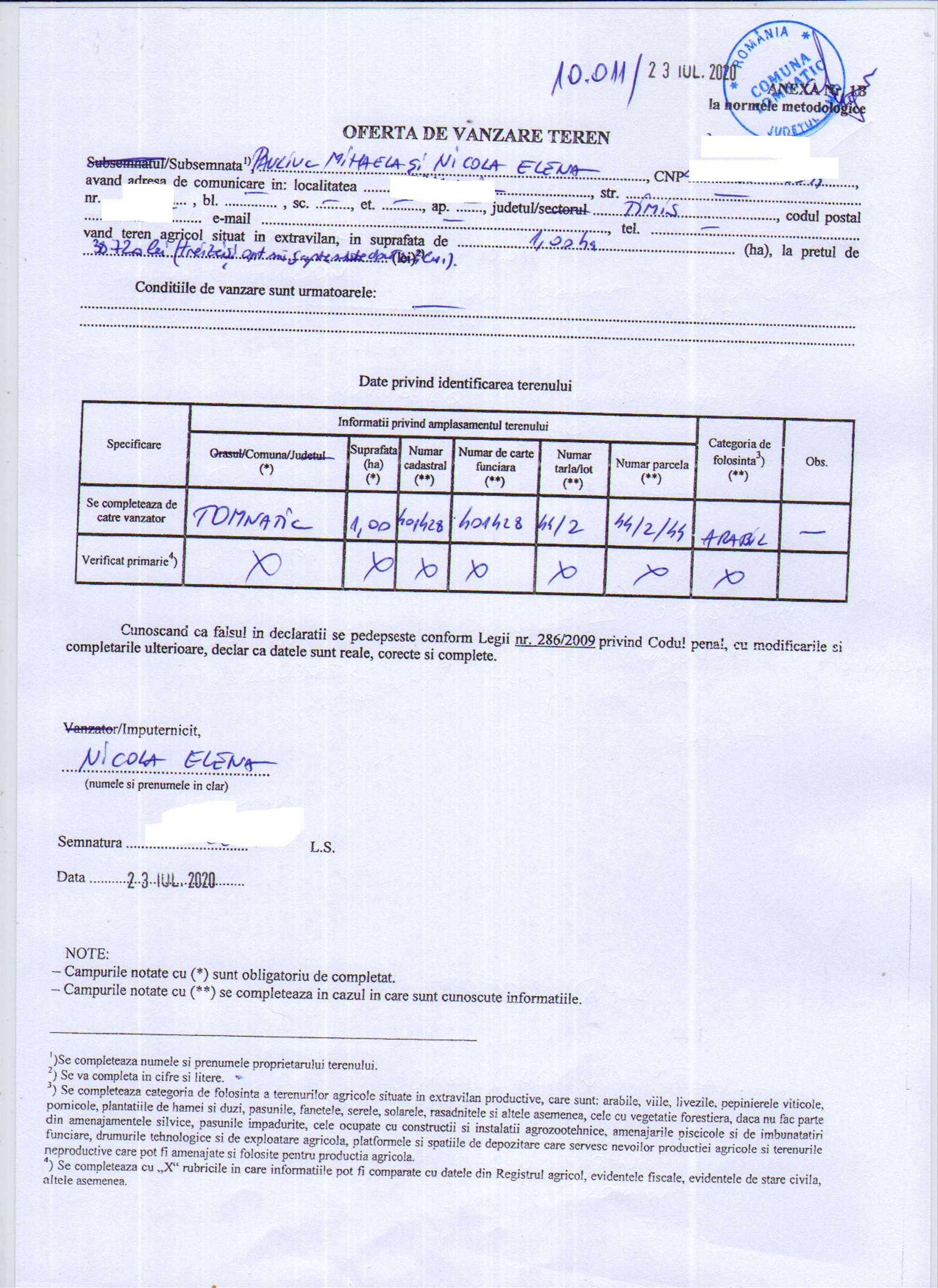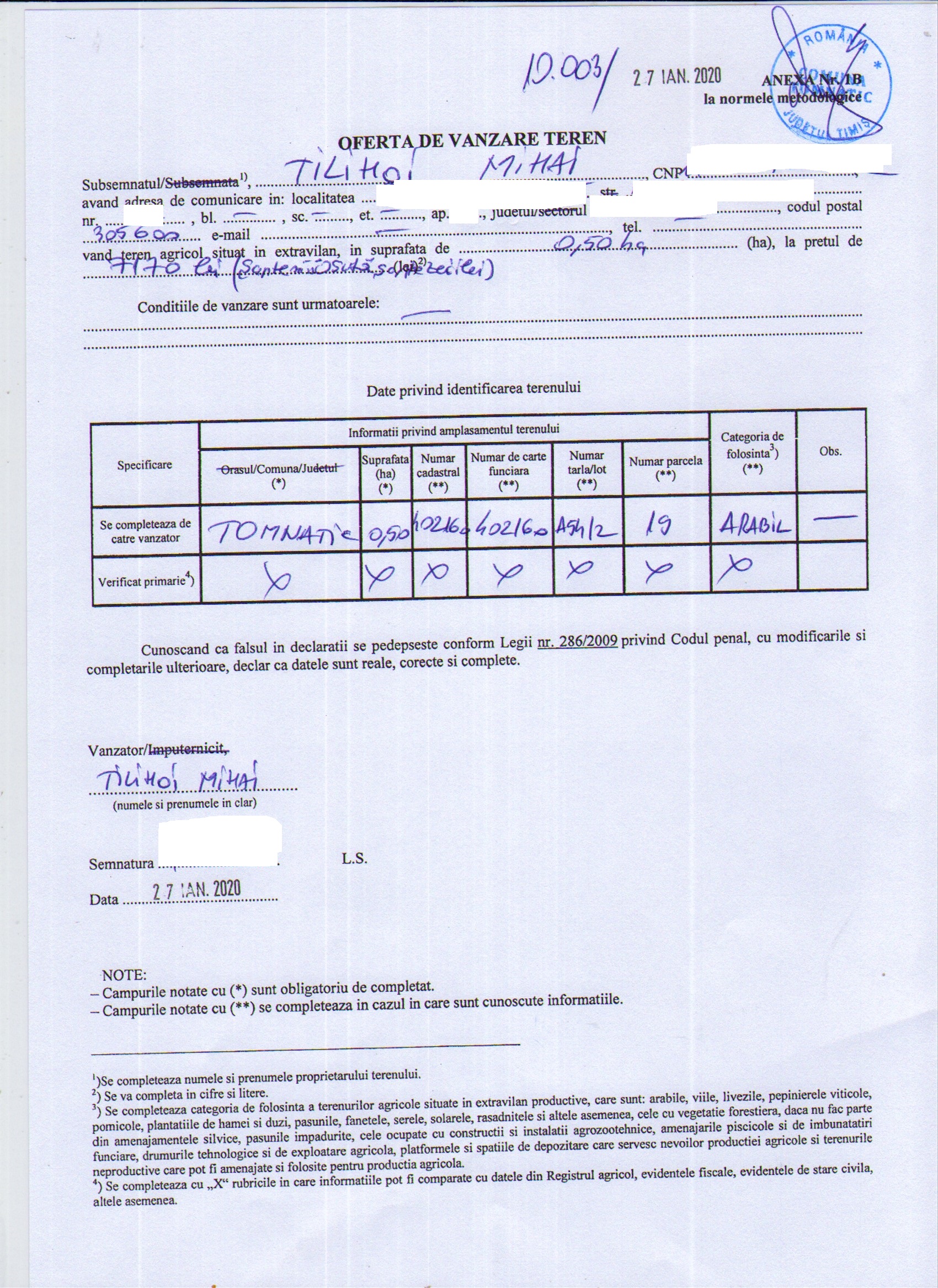 - Oferta de vânzare teren nr. 10.003 din 2020